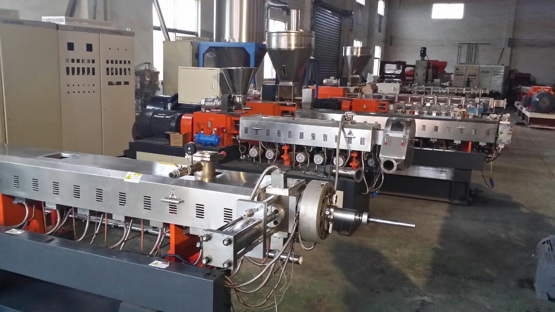 Main business: twin screw extruder, single screw extruder, mixer, cone doublefeeding machine, continuous mixer, weightlessness said feeding system, double step granulator, a copy of the German type eagerly granulation unit, cable materialpelletizer, rubber Muli granulator, highly filled Muli granulator granulation,ABS/PC/PA engineering plastics the elastic body machine, granulator, PP/PE filled with modified granulation machine, flame retardant masterbatch granulator,masterbatch granulator, carbon black masterbatch granulator granulation, PLA degradation granulation machine, wood plastic granulator, PP/PE/PVC sheetextrusion unit, profile extrusion machine, laboratory extruder.