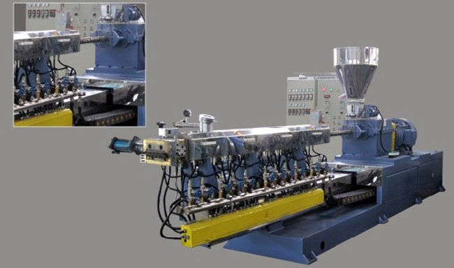 Push pull type double screw extruder is divided into a front push and pull and push back pull two kinds of structure, free separation cylinder and screw can be fast,very convenient cleaning machine, the most important is it can easily observedmaterial changes in the equipment, the ratio of length to diameter barrel structure,the screw is arranged, membrane net structure, position exhaust quantity feeding mode, electrical control mode, optimize reasonable configuration, convenient cleaning, experts recommend masterbatch, testing and other special equipment