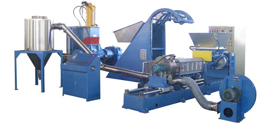 This machine is suitable for PVC cable, CPE cable material, low smoke halogen-free cable material and PP/PE/POE/EVA+80% calcium carbonate, talc powder with highfilling masterbatch, masterbatch masterbatch, rubber additives, such as carbon black masterbatch, the mixer mix the raw material after the forced feeding machineinto the granulator, then through the die head eagerly system into particle, this unitoperation is simple and convenient